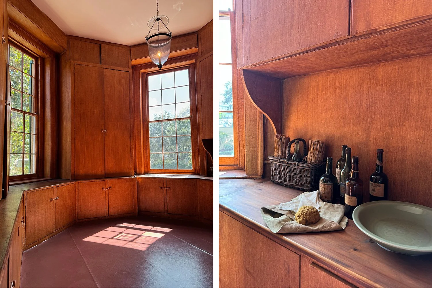 The original butler’s pantry: Food was brought here and assembled before being served in the dining room. However, the cooking itself was done outside, as indoor cooking at the time posed a fire risk and made the house unbearably hot.